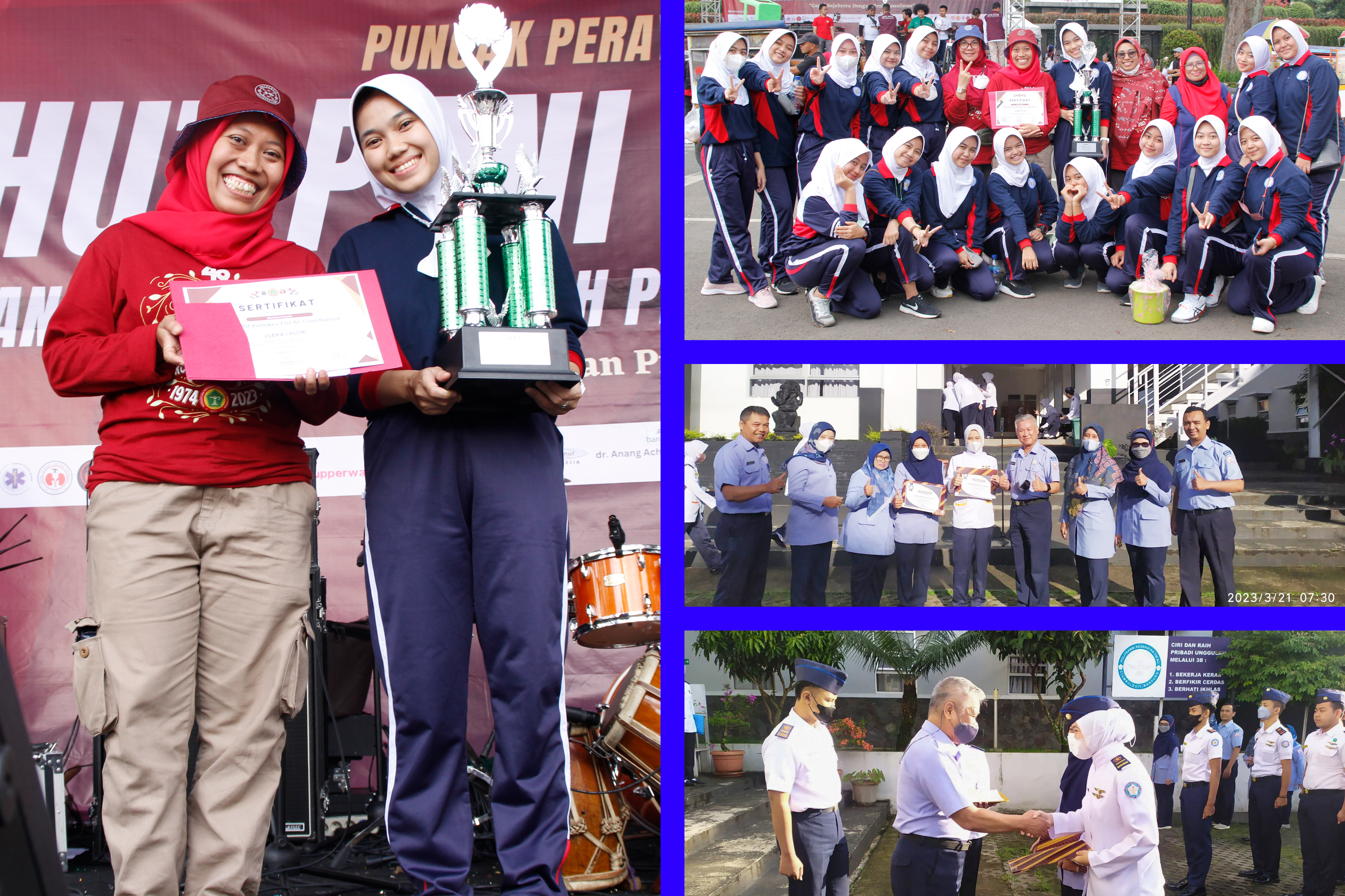 Pada hari selasa tanggal 21 Maret 2023, Saat dilaksanakan apel pagi dengan pembina Direktur Poltekes TNI AU Dr. dr. Krismono Irwanto, MH. Kes memberikan penghargaan kepada Noerzaquila Moreno Putri Suherlan (Mahasiswa) dan ibu Ns. Sussanty Cahyaning Nurdyantary. S.Kep.,M.Kep (Dosen Keperawatan) karena sudah membanggakan Poltekes TNI AU